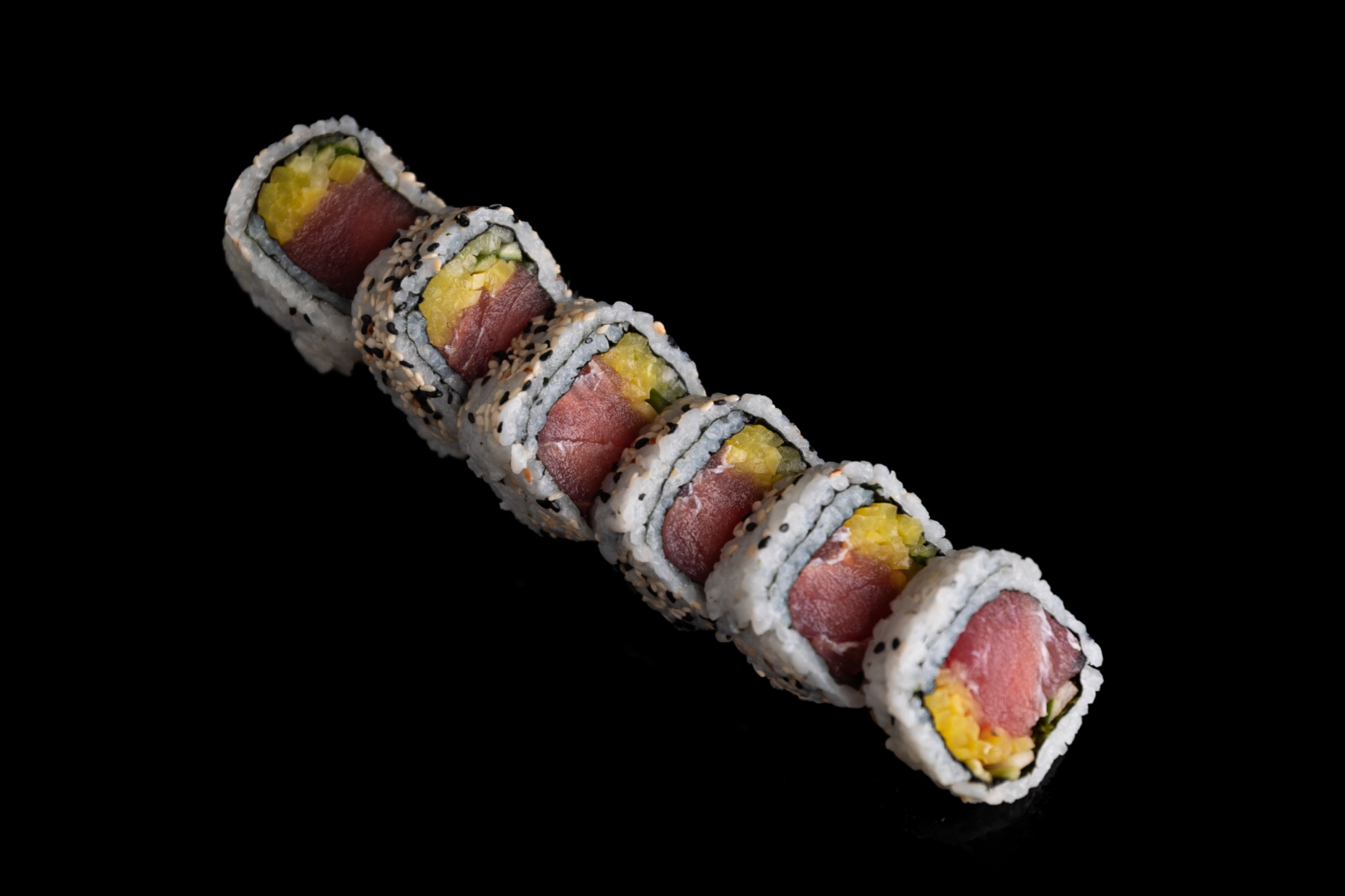 Tuńczyk, łosoś, awokado, prażony sezam 6szt